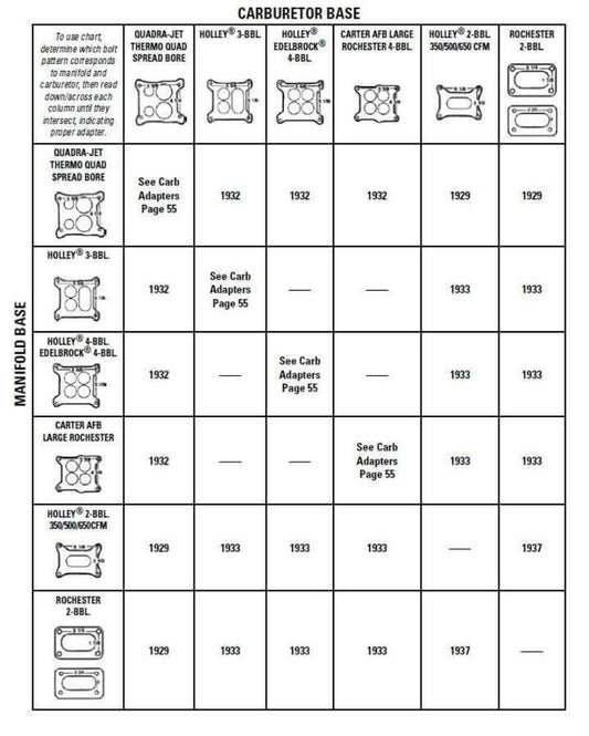 Mr. Gasket 1933 - Carb Adapter Kit 4-Barrel to 4-Bolt 2-Barrel SBC Chevy
