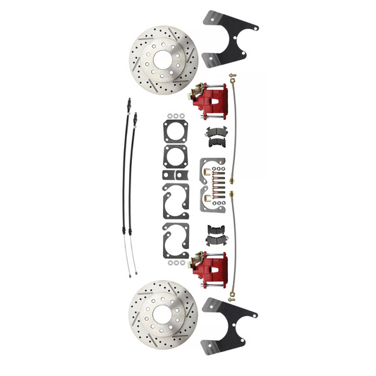 Fits 1955-1958 GM Full Size Disc Brake Kit Drilled/Slotted Rotors-Red DBK5558LXR