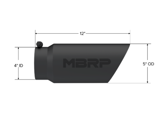 Tip; 4in. O.D.; Angled Rolled End; 2.5in. inlet; 12in. in length; Black-T5150BLK