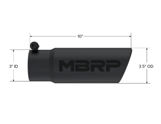 Tip; 3in. O.D. Angled Rolled End; 3in. I.D. inlet; 10in. length; Black-T5115BLK