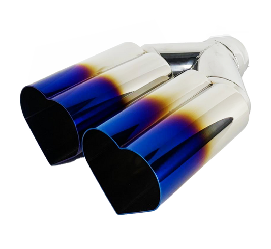 2.5" ID/4" OUT/10" Dual Heart Shape Exhaust Tip Blue Burnt Flame NT-HEART-DBL