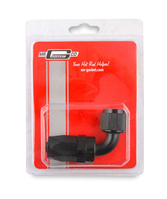 Mr. Gasket -8 AN 90 Degree Swivel Hose End - Black - 229008-BL
