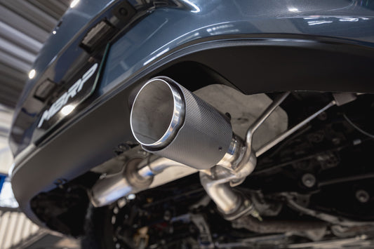 Fits 2016+ Mazda MX-5 Miata Single Rear Exit 2.5in Axle Back w/ Carbon Fiber Tips - T304