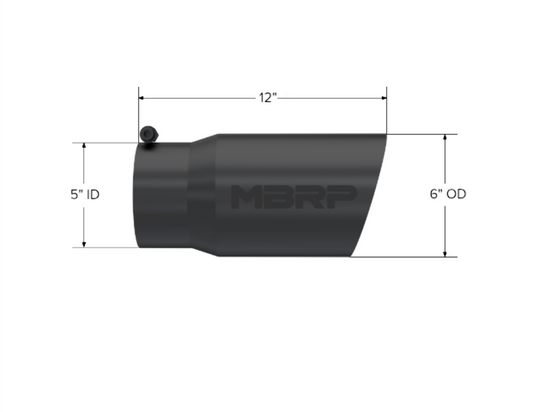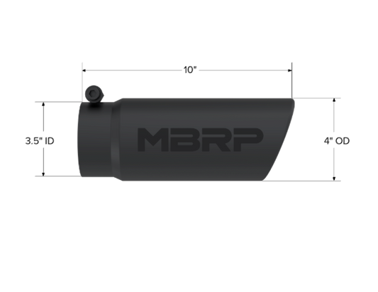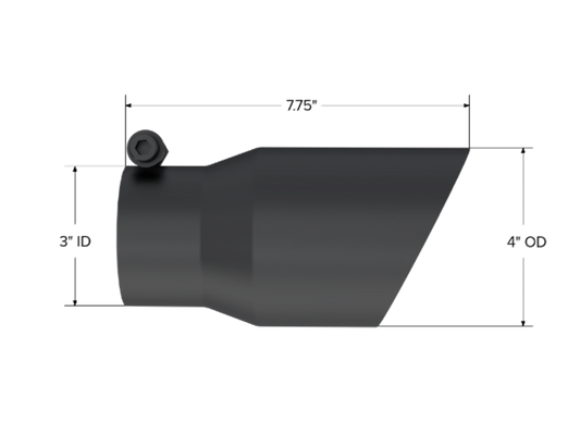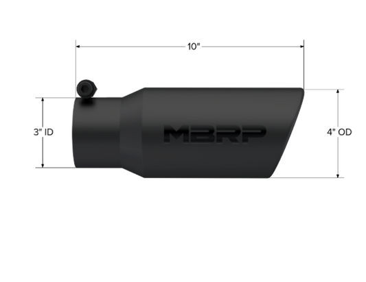 Tip; 4in. O.D.; Angled Rolled End; 3in. inlet; 10in. length; Black - T5155BLK