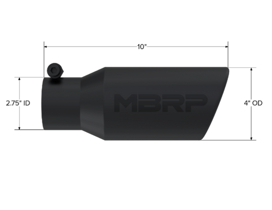 Tip; 4in. O.D. Angled Rolled End 2 3/4in. inlet 10in. length; Black - T5157BLK