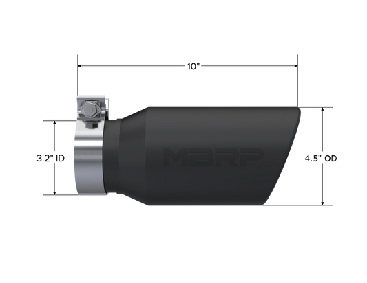 4.5in. OD; 3.2in. inlet; 10in. in length; Angled cut Rolled End; BLK - T5196BLK