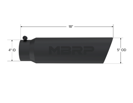 Tip; 5" O.D.; Angled Rolled End; 4" inlet 18" in length; Black Coated-T5124BLK