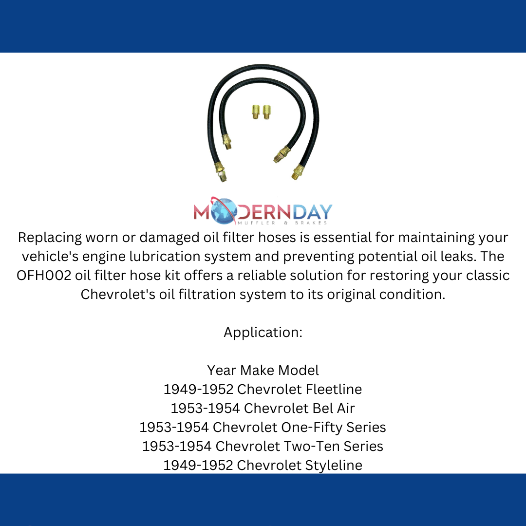 Replacing worn or damaged oil filter hoses is essential for maintaining your vehicle's engine lubrication system and preventing potential oil leaks. The OFH002 oil filter hose kit offers a reliable solution for restoring your classic Chevrolet's oil filtration system to its original condition.