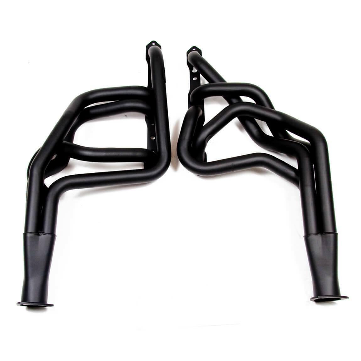 Hooker Competition headers offer the best value in the high performance header market. Designed for the value-conscious buyer who is running either a "stock" or "mildly-modified" engine, Hooker Competition headers offer premium features at a very competitive price. Made of durable 16 gauge mild steel tubing, the Hooker Competition header design utilizes a long transition collector to reduce back pressure and increase exhaust flow. A perfect sealing surface is assured with the 5/16" machined flanges, with welded O-ring seals. Experience has proven that this flange size is ideal to maintain header integrity and be pliable enough to seal each exhaust port. Tubing is mandrel-bent to maintain metal strength and provide consistent tube diameter at radii to maximize performance. Hooker Competition headers have a standard finish that features a heat-cured, high-heat-resistant paint. Optionally, the famous Hooker Ceramic Thermal Barrier Coating is available.