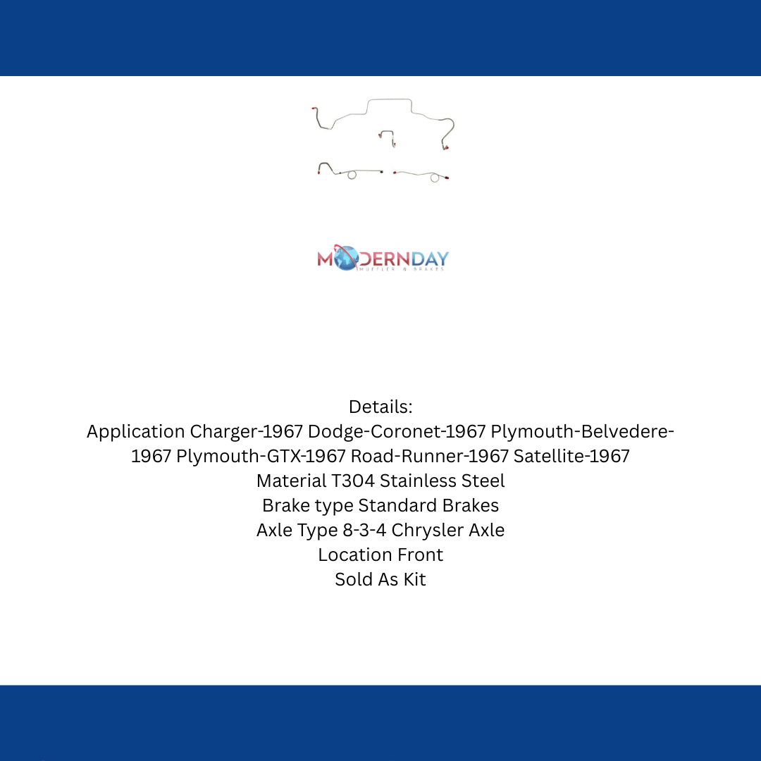 1967 Dodge Charger Complete Brake Line and Hose Kit Standard Drum Brakes BLH102SS