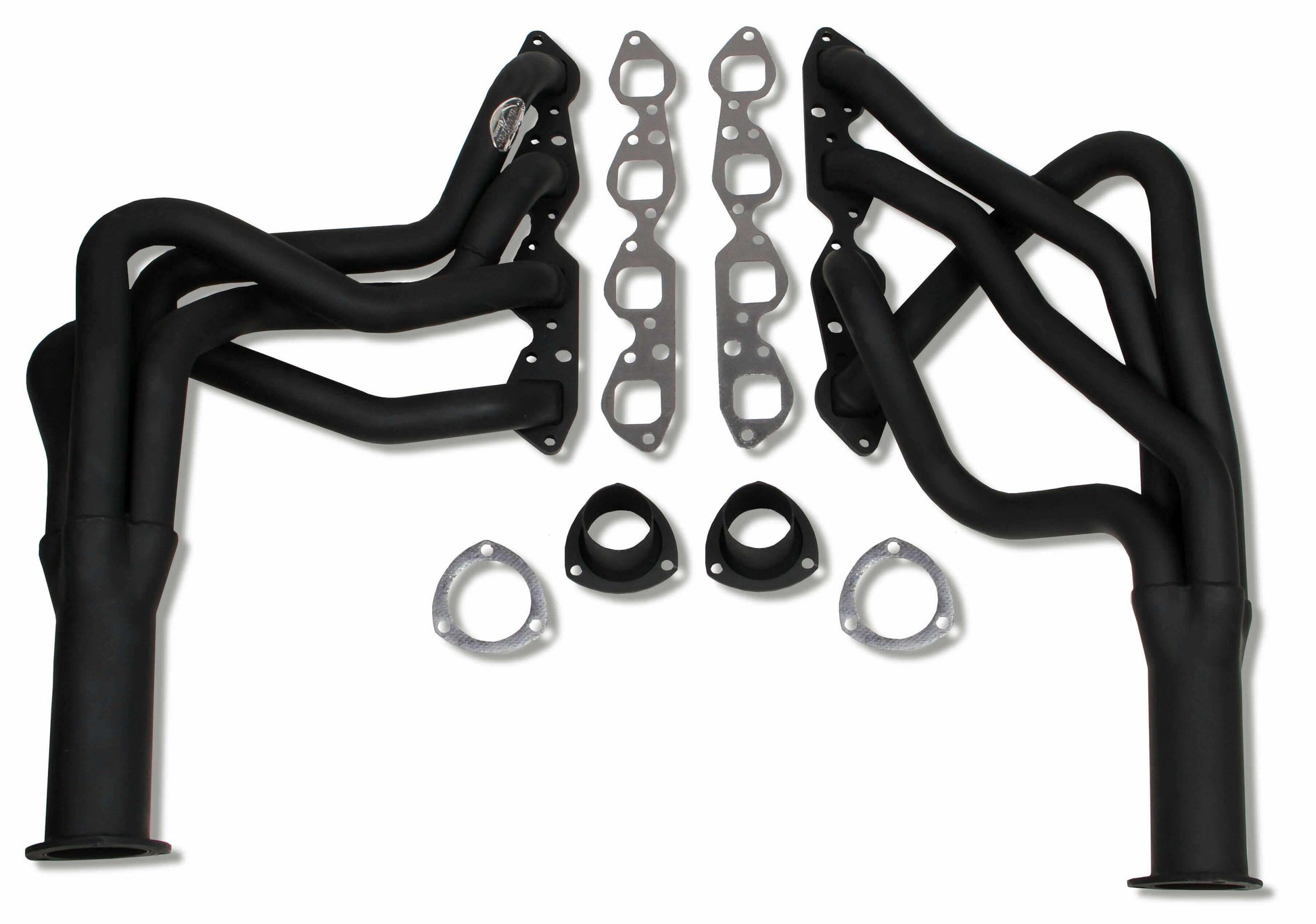 Hooker Competition headers offer the best value in the high performance header market. Designed for the value-conscious buyer who is running either a "stock" or "mildly-modified" engine, Hooker Competition headers offer premium features at a very competitive price. Made of durable 16 gauge mild steel tubing, the Hooker Competition header design utilizes a long transition collector to reduce back pressure and increase exhaust flow. A perfect sealing surface is assured with the 5/16" machined flanges, with welded O-ring seals. Experience has proven that this flange size is ideal to maintain header integrity and be pliable enough to seal each exhaust port. Tubing is mandrel-bent to maintain metal strength and provide consistent tube diameter at radii to maximize performance. Hooker Competition headers have a standard finish that features a heat-cured, high-heat-resistant paint. Optionally, the famous Hooker Ceramic Thermal Barrier Coating is available.