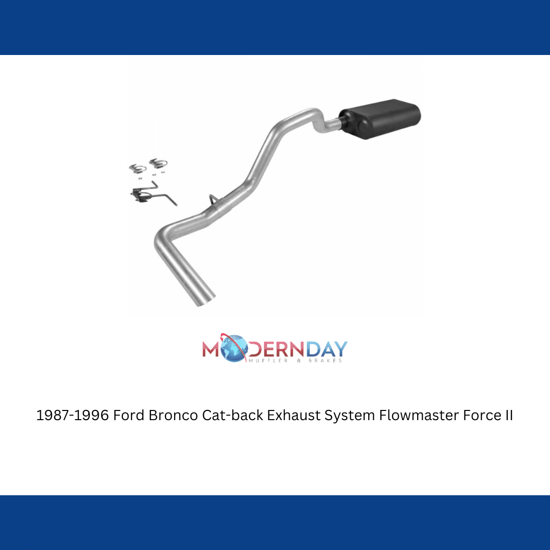 This Flowmaster Force II® cat-back exhaust system is custom designed for 1987-1996 Ford Bronco with 5.0L or 5.8L engine using a slip fit catalytic converter and is perfect for the person looking for a mild to moderate sound level inside and outside of