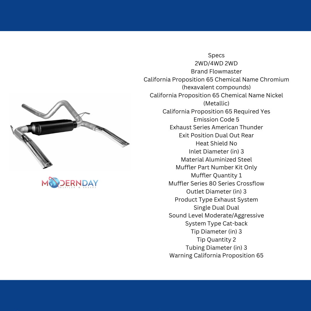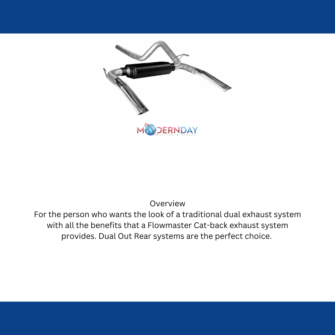 For the person who wants the look of a traditional dual exhaust system with all the benefits that a Flowmaster Cat-back exhaust system provides. Dual Out Rear systems are the perfect choice. American Thunder systems deliver a moderate to aggressive interi