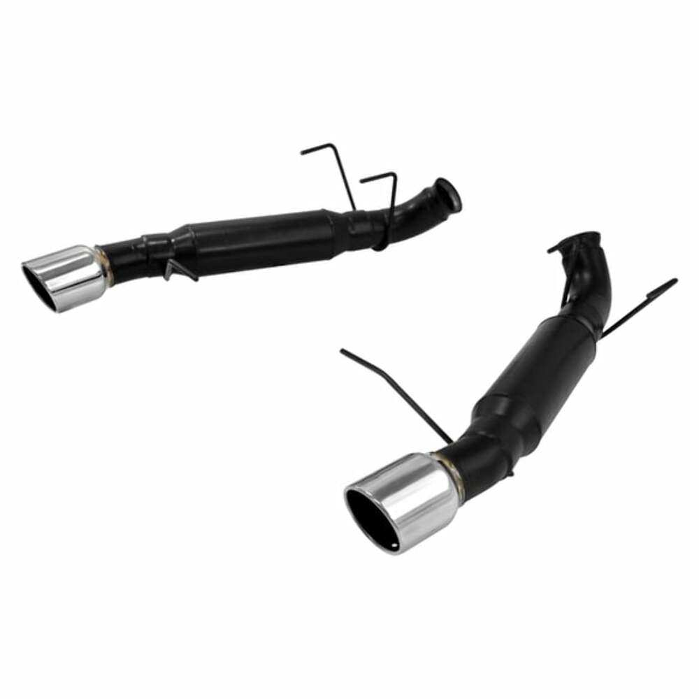 This Flowmaster® Outlaw Axle-back exhaust system is specifically designed for 2013-2014 Ford Mustang GT 5.0L coupes and convertibles. The system features a pair of race proven Outlaw® mufflers for an aggressive exterior sound level with a moderate interior sound level. Features include 2.50-inch connections for an easy fit to the stock mid-pipe then the inlets quickly expand to full 3.00-inch mandrel-bent inlet tubing leading into a pair of Outlaw mufflers for maximum performance. The system is supported from the factory hanger locations for an easy and hassle free installation that can be done at home and is finished off with a pair of large 4.00-inch polished stainless steel tips for that performance look and sound that you've come to expect from Flowmaster.