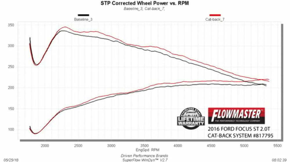 The Outlaw cat-back exhaust system is designed for all 2013-2018 Ford Focus ST models with the 2.0L turbocharged engine and is perfect for the person looking for an aggressive exterior and interior sound level and who is not afraid of the attention. Features include large 3.00-inch mandrel-bent stainless steel tubing flowing into a specially tuned resonator for maximum performance and sound. The system then uses a Scavenger Y-collector splitting into dual 2.50-inch tailpipes and is finished off with a pair of large 4.00-inch carbon fiber tips exiting out through the factory exhaust cutouts in the rear valance. This custom system uses all the factory hanger locations, includes all necessary hardware and detailed instructions for an easy installation you can do at home.