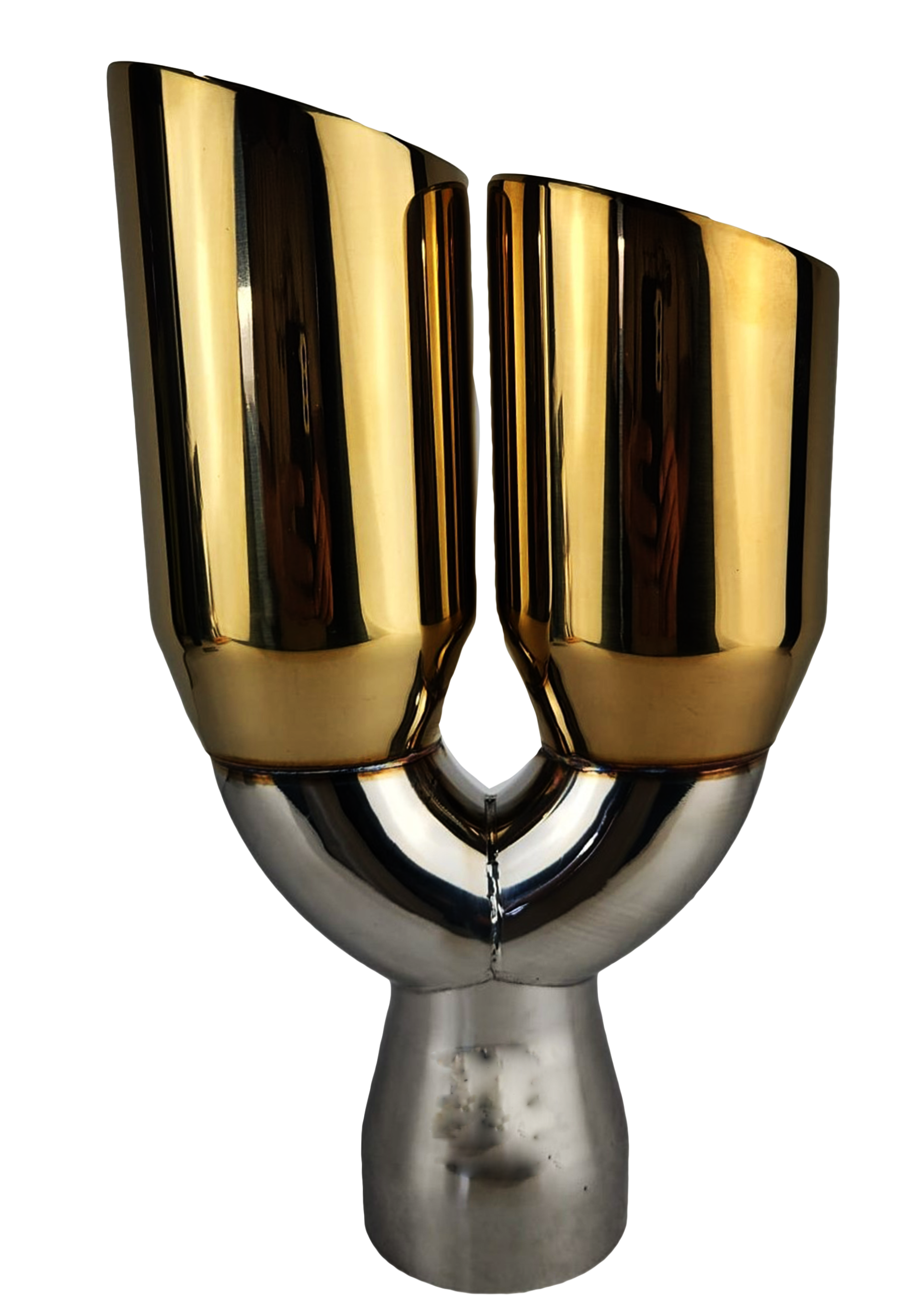 3" IDX3.5"X13.5" -Dual Double Wall Slant Cut S/S Gold Exhaust Tip 1637GD