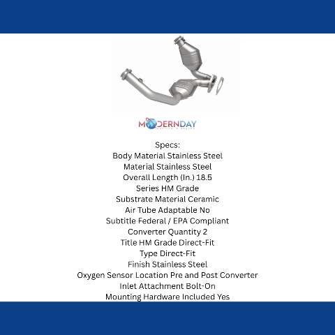 MagnaFlow HM Grade Federal/EPA Compliant Direct-Fit Catalytic Converter 93110 helps keep the check engine light off. DIY installation is easy with the proper tools (no cutting or welding required). With features including mandrel-bent tubing to eliminate flow restrictions and stainless steel construction to resist corrosion, you can have confidence in the quality of this catalytic converter. Using state-of-the-art 3D scanning systems in the design process, the MagnaFlow metrology department ensures this new part to fit and function like the original equipment. Designed to fit the 1998-2000 Ford Ranger, 1998-2000 Mazda B3000, and more, this direct-fit catalytic converter also interchanges with OE parts ZZP2-40-050 and ZZP3-40-050, among others. Avoid potential exhaust leaks by using the included gaskets to get a proper seal. This replacement part is designed to meet or exceed Federal emissions requirements set forth by the EPA, complying with legal standards for OBDII Federally registered vehicles with Federal/EPA Emission systems.