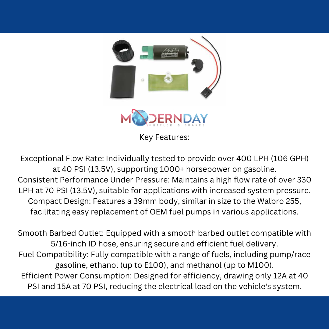 The AEM 400LPH High Flow In-Tank Fuel Pump (50-1235) offers a combination of high performance, reliability, and versatility, making it an excellent choice for enthusiasts aiming to enhance their vehicle's fuel delivery system.