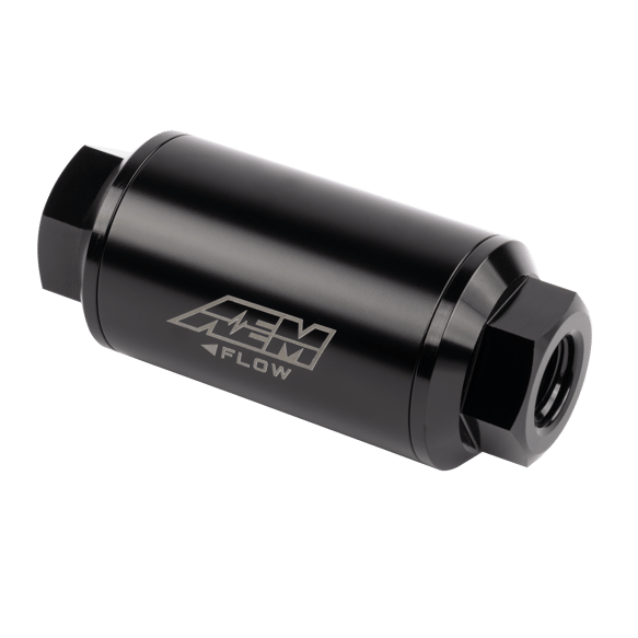 AEM's Universal High Flow -6 AN ORB Inline Filter is specifically engineered for maximizing flow without sacrificing filtration, and is designed for ease of installation. The end caps are machined with -6AN female fittings. Machined O-ring receiver grooves on the end caps ensure against leaks, and all sealing O-rings and gaskets are made of Viton for outstanding performance when using gasoline, alcohol or gasoline/alcohol blended fuels.