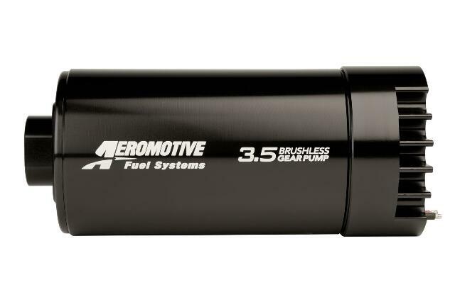 The market leader in fuel delivery systems and components, Aeromotive introduces its first brushless fuel pump series. The 3.5 Brushless Gear pump provides the Pro-Series Fuel Pump performance the world has come to trust and depend on, now available with the latest Spur-Gear pumping mechanism and brushless-motor technology. Built for up to 90 psi of sustained pressure, this new pump supports Pro-Series flow at higher pressures with minimal drop in flow. This new brushless spur-gear pump is able to move more fuel and sustain higher pressures without failure. ORB-12 inlet and ORB-10 outlet ports. For EFI applications use regulator P/N 13134 or P/N 13305. For carbureted applications use regulator P/N 13202 or P/N 13212. Capable of 90-PSI continuous operating pressure, 150 PSI peak pressure, base plus boost. Perfect for ?blow-through? carbureted engines up to 2,000 FWHP. Brushless motors employ sensors to monitor rotor angle to provide faster and more reliable phase shifting, producing more torque capacity and motor efficiency. Instead of the armature rotating, in a brushless motor the magnets rotate around the armature and the motor controller manages the phase shift to keep the motor rotating under load (load is related to pressure in a fuel pump).? With more torque per watt and a higher torque to weight ratio, brushless motors produce lower noise and deliver higher reliability. With a higher level of efficiency, down to fractions of a second in design speed control, the new Aeromotive brushless fuel pumps provide precise control of fuel pump RPM as pressure rises, better maintaining pump RPM and flow, producing a flatter flow curve.? Tight tolerances result in less current draw, less heat and extended life. Now there is the ability to upgrade to a premium brushless pump for faster, more reliable and uninterrupted fuel delivery with less power consumption and potential for wear or failure.