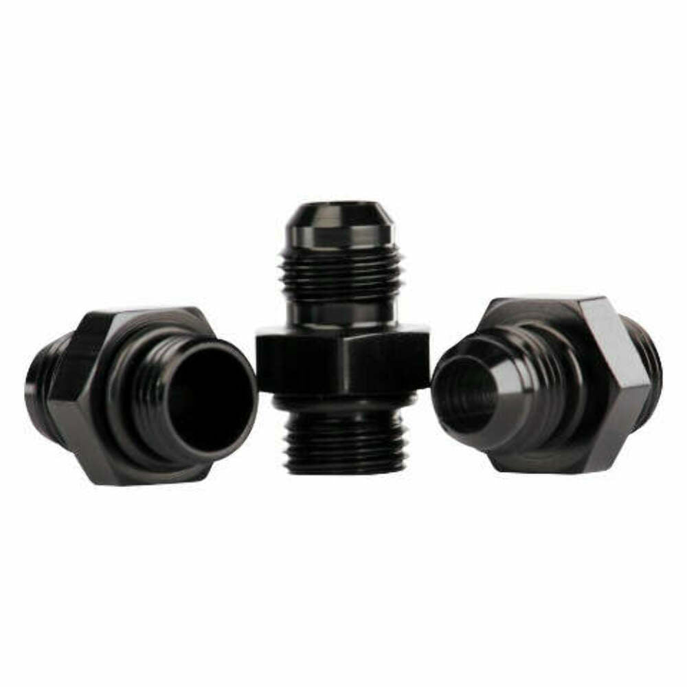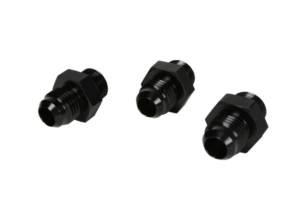 Contains (3) ORB-06 to AN-06 Male Flare Fittings ? P/N 15606. Ideal for use with regulators equipped with ORB-06 ports where AN-06 fuel line connections are desired.?Fits various Aeromotive EFI and Carburetor regulators including: (EFI Regulators P/N 13109, 13138, 13129) (Carburetor Regulators P/N 13201, 13211, 13203, 13204, 13224). Aeromotive port fittings provide maximum flow area and a long radii for smoother transitions from the inlet to the outlet, eliminating fitting cavitation and flow restrictions. The Aeromotive line of custom fittings, adapters and hose-ends are a step above the norm, offering uncompromised fuel flow and positive sealing. Constructed of 6061 T6 aircraft grade aluminum or stainless steel, each component is CNC-machined for precision fit and unmatched flow. All billet aluminum fittings are anodized Type II bright dip black for corrosion protection and unrivaled aesthetics. We offer a complete line of hard to find fittings from OEM specific connections to AN adapters. All Aeromotive fittings and adapters are fully compatible with gasoline and alcohol based fuels.