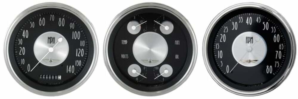 All American Tradition 4 5/8" Speedo, Quad, & Tach with Stainless Low Step Bezel Curved Glass Lens