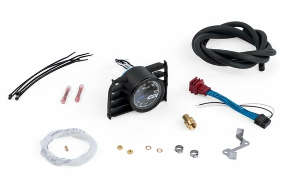 The APR Mechanical Boost Gauge System comes complete with a mechanical gauge in red or blue, with a vent mounted pod for a clean install. Included with the system is all necessary hardware to install, including a harness that eliminates the need to splice into your factory wiring harness.