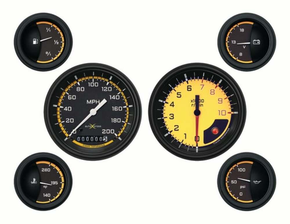 Classic Instruments Auto Cross Yellow 6 Gauge Set