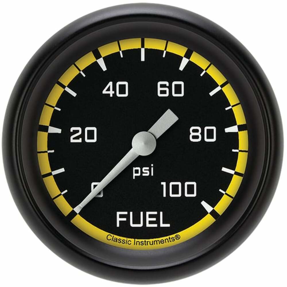 Autocross Yellow 2 5/8" Fuel Pressure Gauge, 100 psi
