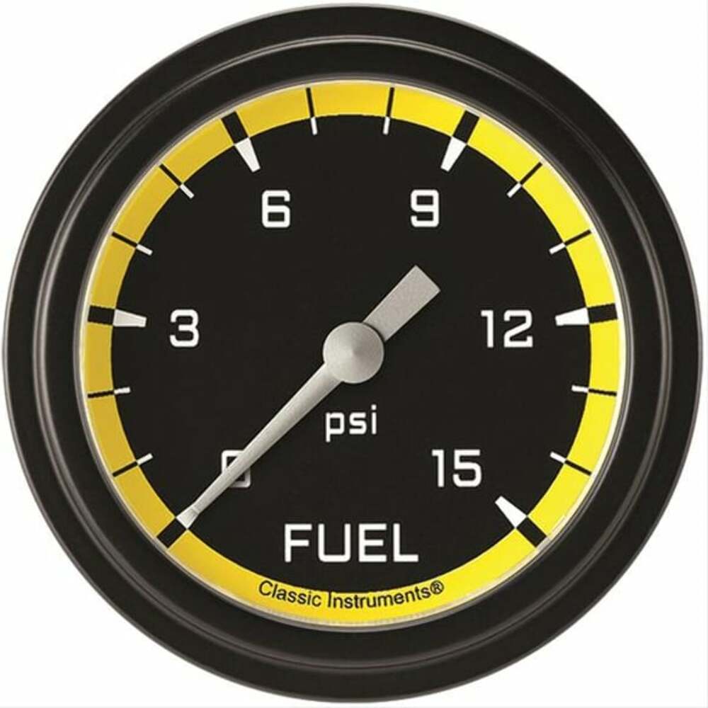 Autocross Yellow 2 5/8" Fuel Pressure Gauge, 15 psi