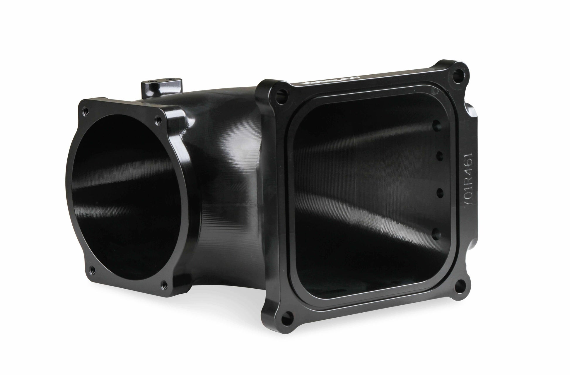 Features (4) vacuum ports, MAP sensor port, machined / port matched to 4500 gasket, and 100° throttle body angle for extra hood clearance. Includes billet MAP sensor port cover, gaskets & hardware. The port design spacing will also allow a transducer to be used if a MAP sensor is not needed. The intake flange has an o-ring groove for a positive flange seal and the o-ring is included as well.
