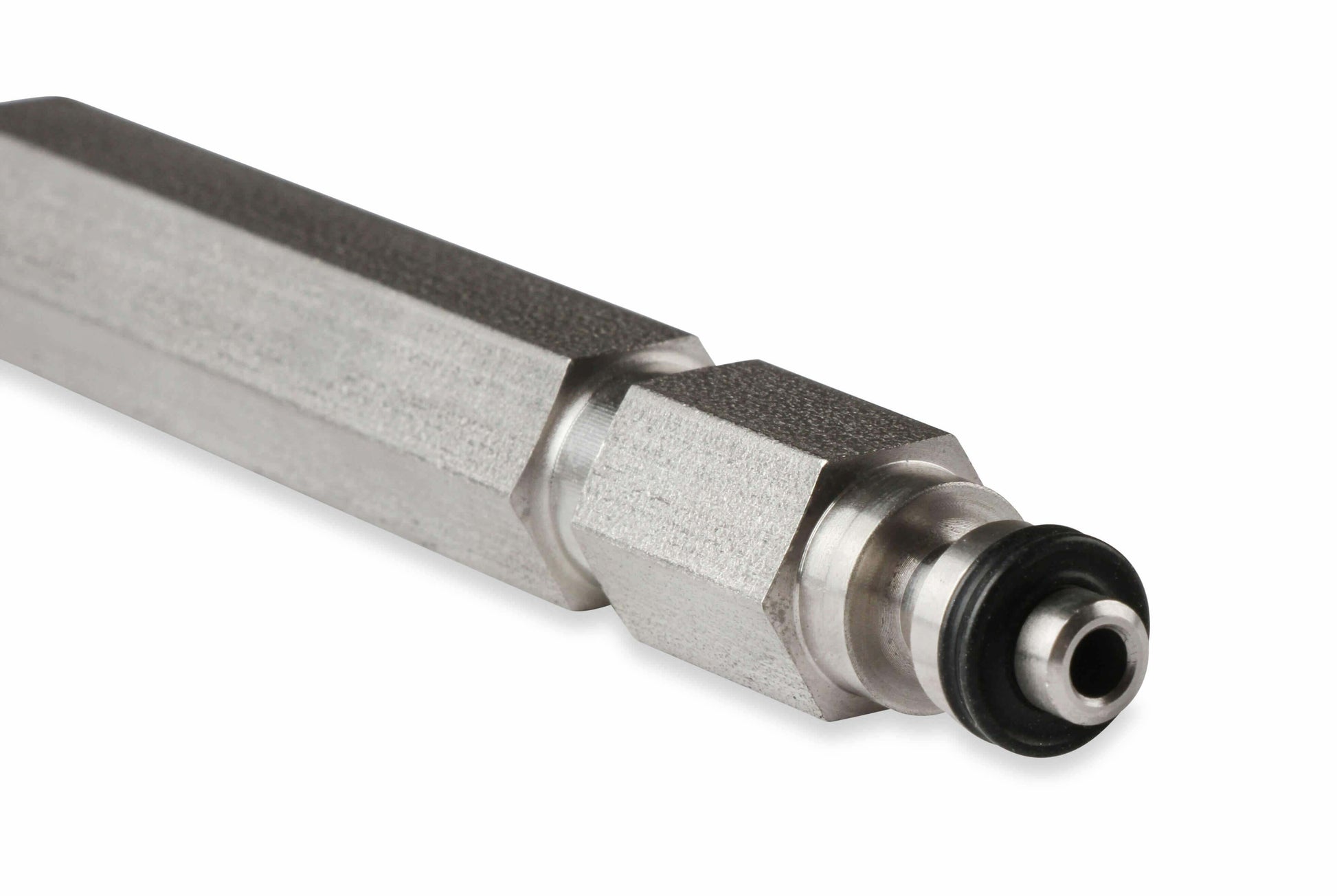 This new long style adapter is ideal for use on engine swaps w/ the T-56 and other Late Model manual transmissions. This extra-long adapter (part # LS640281ERL) is used on the feed side to the hydraulic clutch release bearing. This adapter is 4.329" long and the extra length makes it easier to attach the hose from the master cylinder to the clutch bearing when it is installed in the bell-housing. This adapter is ideal for an engine swaps since it eliminates the plastic OEM clutch hose & allows replacement w/ Earls Speed-Flex hose assembly (custom length and more durable w/ high performance clutches & high heat applications).