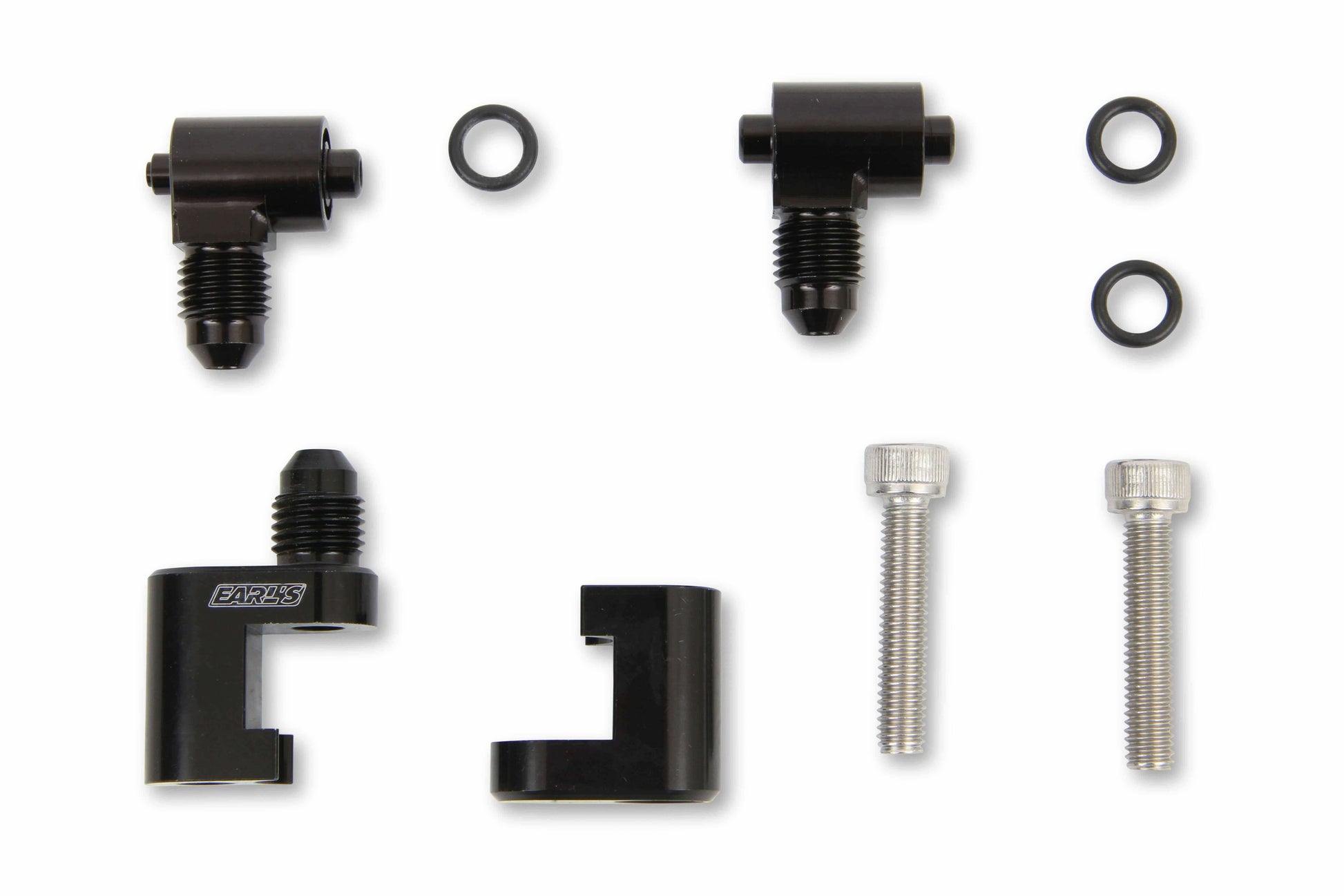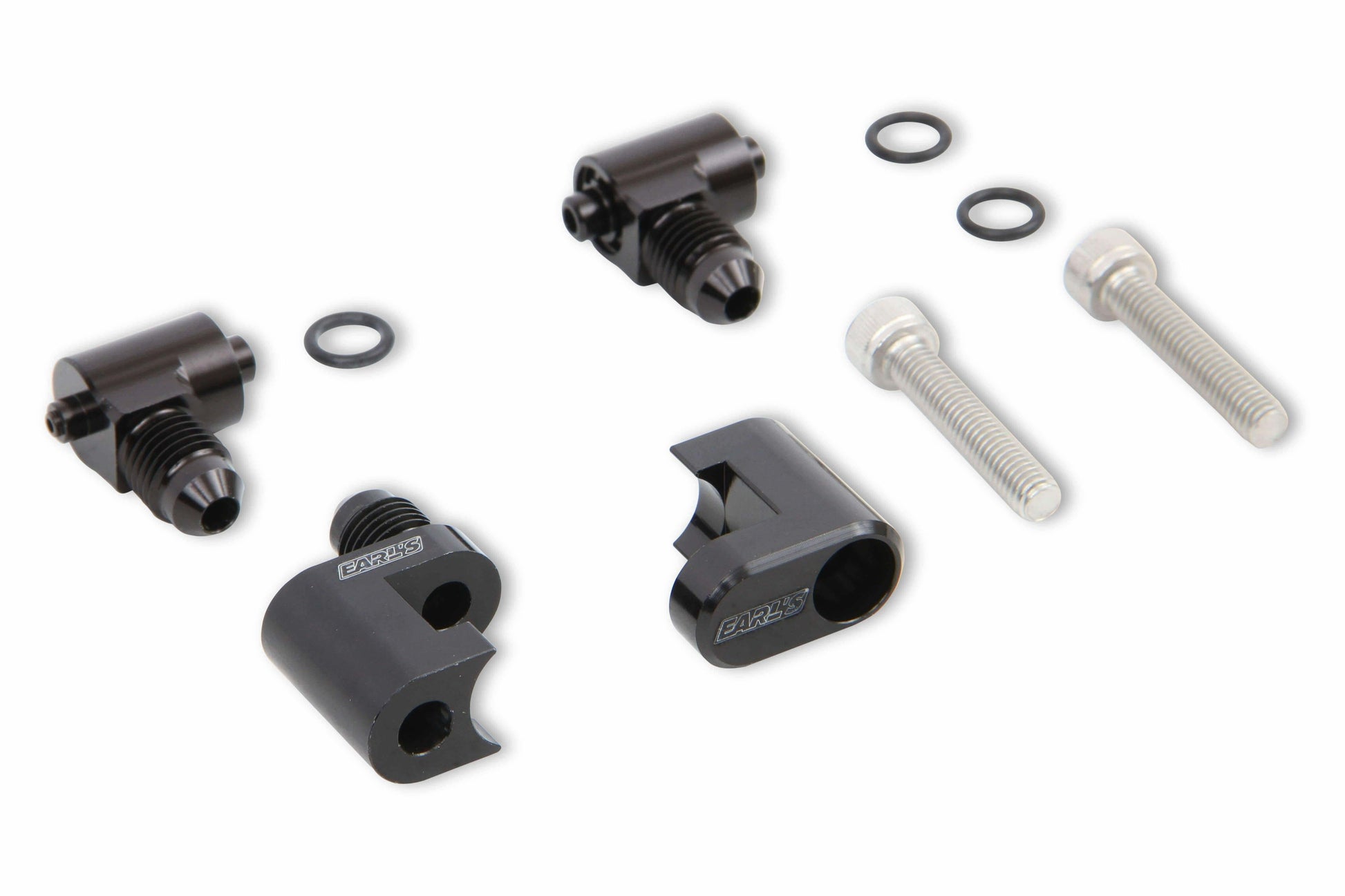 Another first from Earls are the adjustable LS steam tube adapters. The original GM brazed vent tube manifold does not take into consideration the aftermarket intakes and accessories we put on our performance vehicles. Replace the rigid hard lines with these adjustable outlet, O-ring seal adapters that converts to -3 or -4 AN plumbing. Earl's Steam tube adapters are the most adjustable and lowest profile available. These adapters LOOK as nice as they are installation friendly. There are 6 kits available to allow for the optimal routing on your application including at dual outlet option which eliminates needing a T adapter.