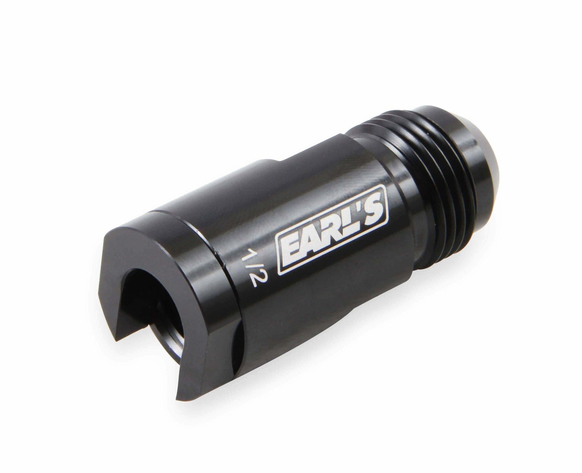 The Earl's Vapor Guard™ product line has been expanded to include O.E. fuel line quick connect fittings. These adapter fittings allow an easy way to re-use existing OEM fuel rails, fuel filters, and other components when doing an engine swap, or upgrading to AN Fuel Hoses. Each fitting has a -10 AN Male Flare, and a metal retainer nut for a secure leak-free connection to the 1/2" SAE style fuel tube. Constructed from 6061 T6 aluminum w/ black anodized finish.
