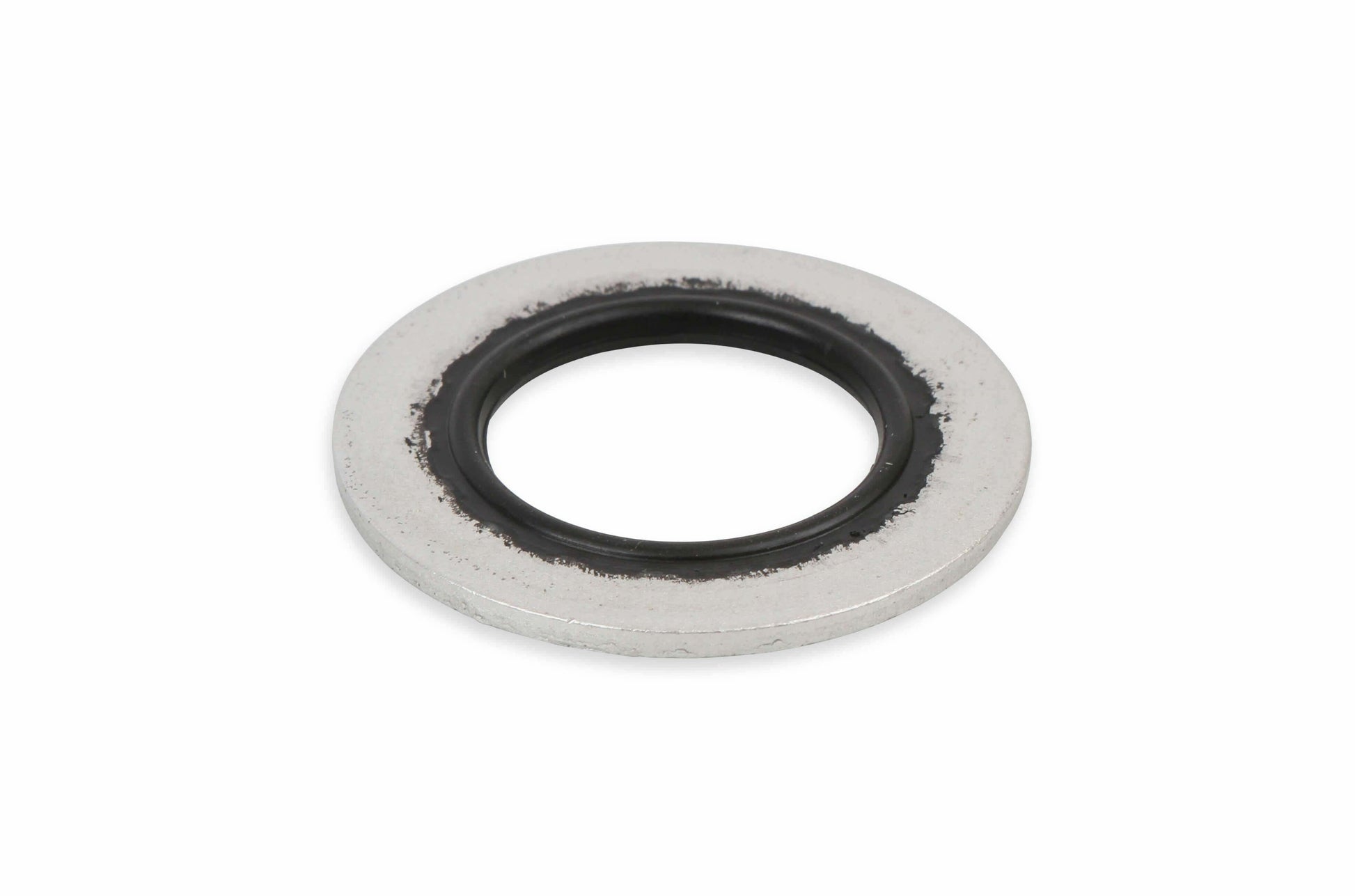 The Stat-O-Seal is very simply the best sealing washer available. It consists of a synthetic rubber "O" ring mechanically locked to the I.D. of an aluminum washer. When tightened, the "O" ring is compressed, forcing the sealing surfaces around the bolt shank. They will form a positive seal over a temperature range of -85° to +450° F. They provide the advantages of an "O" ring type seal without the necessity of machining "O" ring grooves into the part. In any application where you are now using a copper or aluminum sealing washer, the Stat-O-Seal will do a better job.Features: