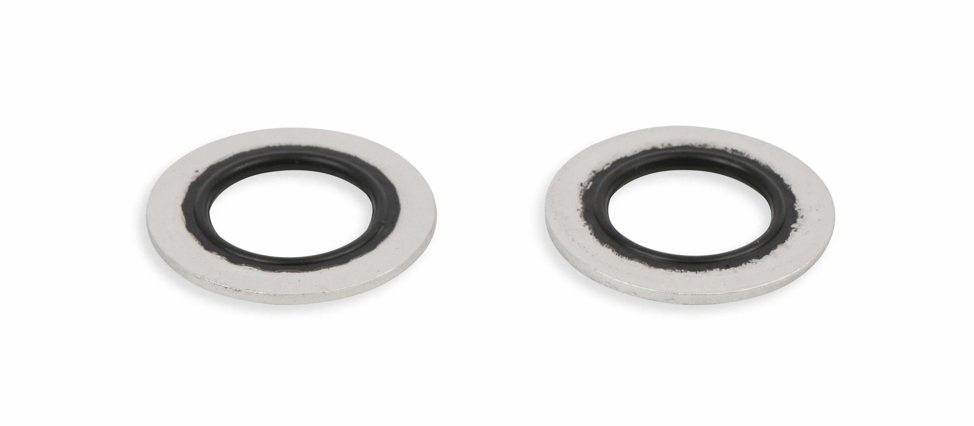 The Stat-O-Seal is very simply the best sealing washer available. It consists of a synthetic rubber "O" ring mechanically locked to the I.D. of an aluminum washer. When tightened, the "O" ring is compressed, forcing the sealing surfaces around the bolt shank. They will form a positive seal over a temperature range of -85° to +450° F. They provide the advantages of an "O" ring type seal without the necessity of machining "O" ring grooves into the part. In any application where you are now using a copper or aluminum sealing washer, the Stat-O-Seal will do a better job.Features: