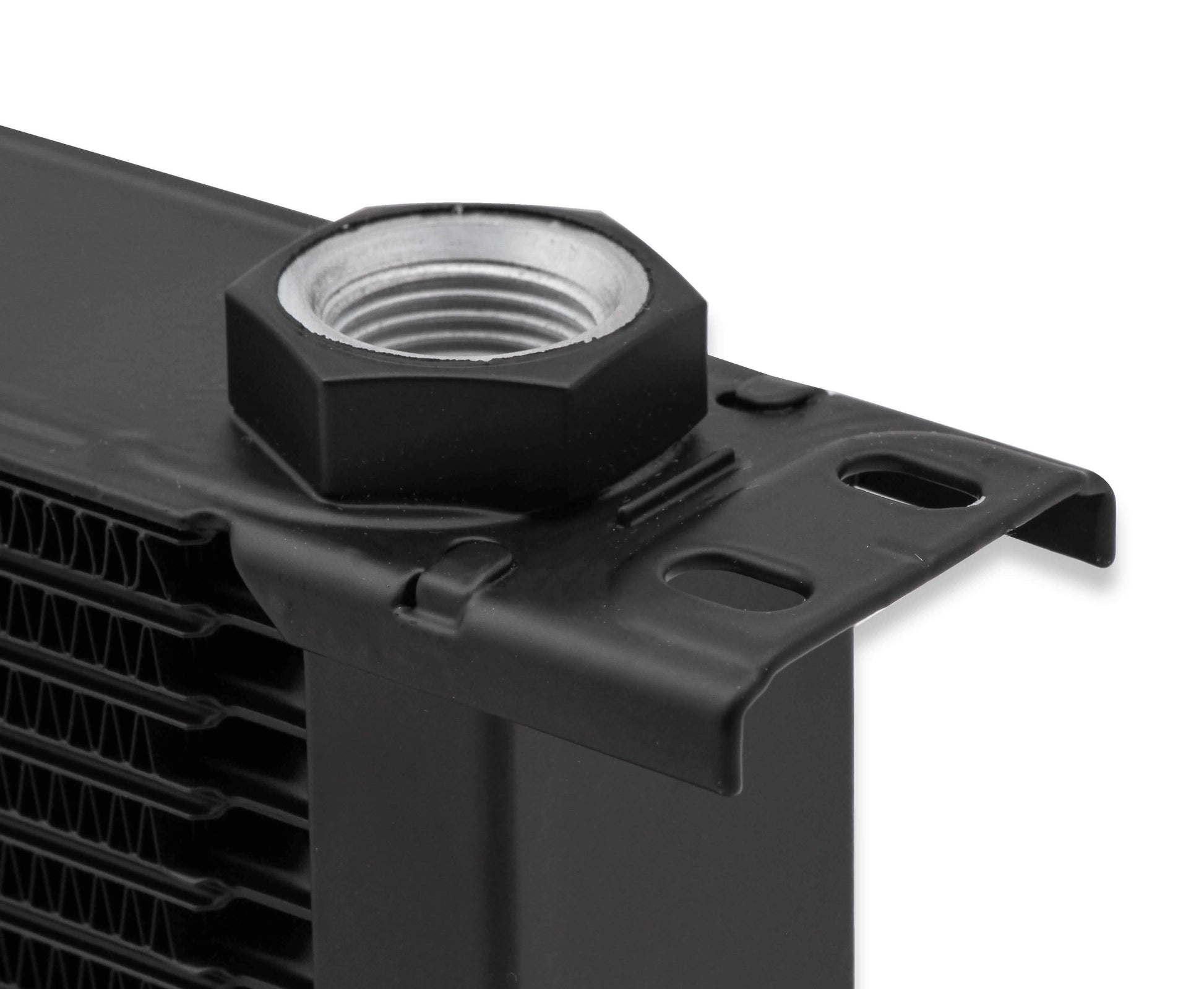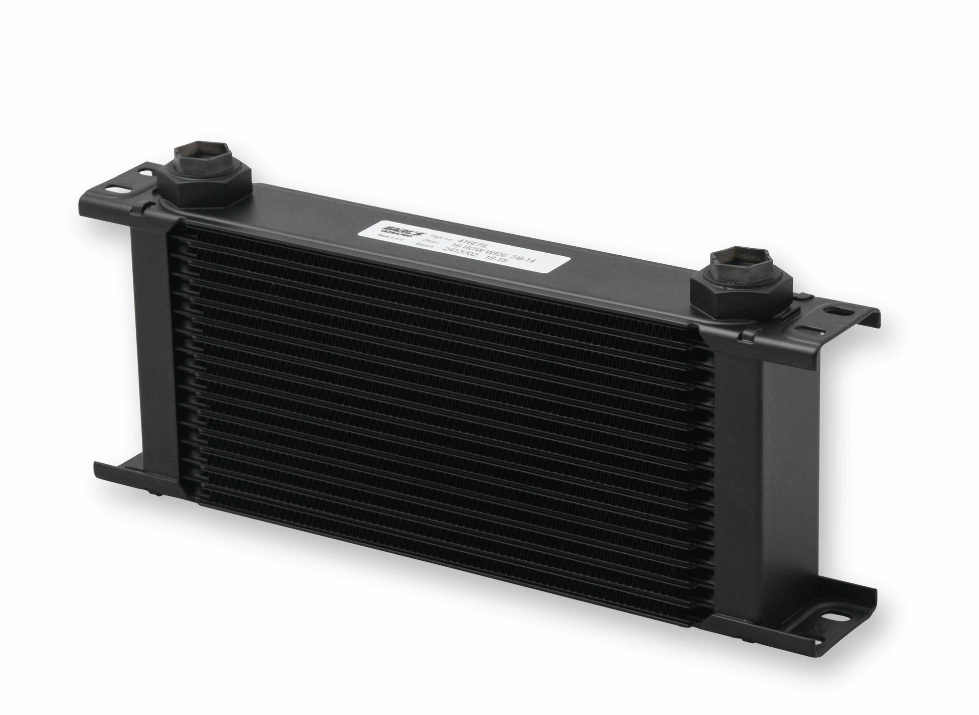 Earls new premium quality UltraPro oil coolers are ideal for all high performance applications. These aluminum stacked plate style coolers are made using state of the art brazing techniques for a durable and long lasting premium cooler that is highly efficient w/ minimal pressure drop. These coolers are available in 30 sizes for all applications (i.e. engine oil cooler, transmission cooler, power steering cooler, valve spring cooler, differential / gearbox cooler, etc.). Three fan pack style coolers are now also available w/ a premium cooling fan & shroud. These coolers feature -10 AN O-ring female ports and are used with special ORB cooler fittings (-6 AN, -8 AN, -10 AN, or -12 AN) and AN hose ends. Earls will also now stock coolers w/ -16 AN male flares brazed on the cooler for applications that require larger ports for additional oil flow. Black Finish.Features: