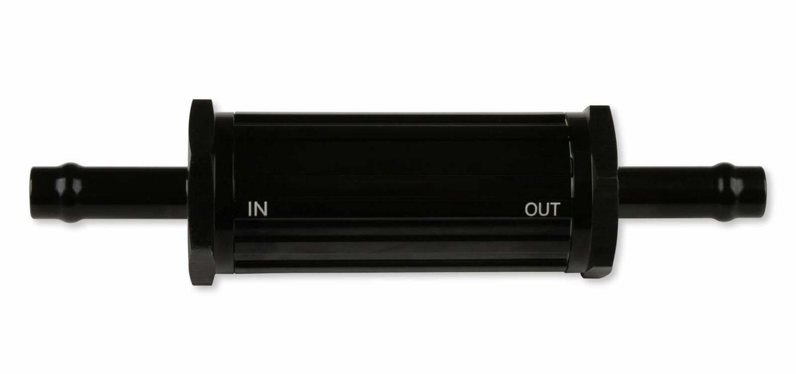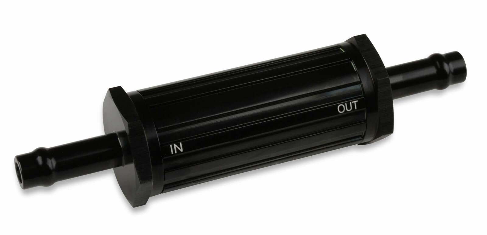 Billet aluminum fuel filter for EFI (10 micron) applications. Use w/ 5/16" Vapor Guard Fuel Hose & Clamps.