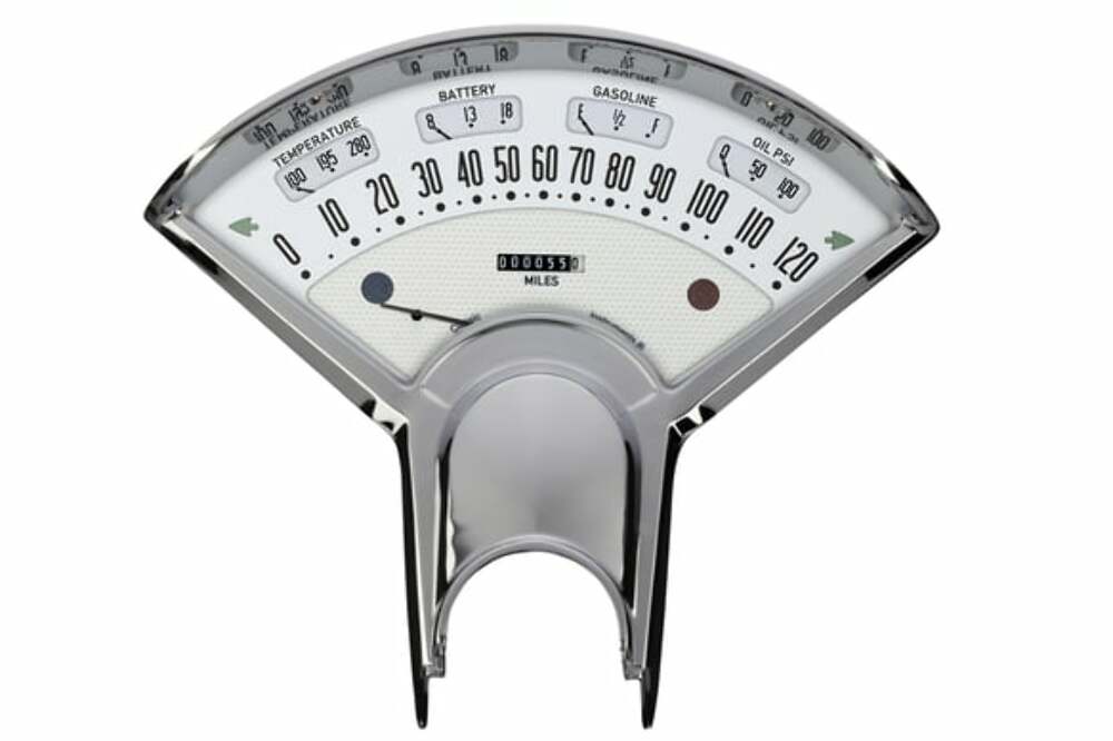 The Bel Era III direct-fit package offers the perfect combination of all-electric technology and the nostalgic stock look of 1955-'56 Chevys. Built with an injection molded housing and dual-layer design, it provides a speedometer, fuel gauge, oil, temp, and volt gauges all in one easy-to-install cluster. New to the Bel Era III is a fuel sender selector switch to easily choose the correct resistance range during installation.