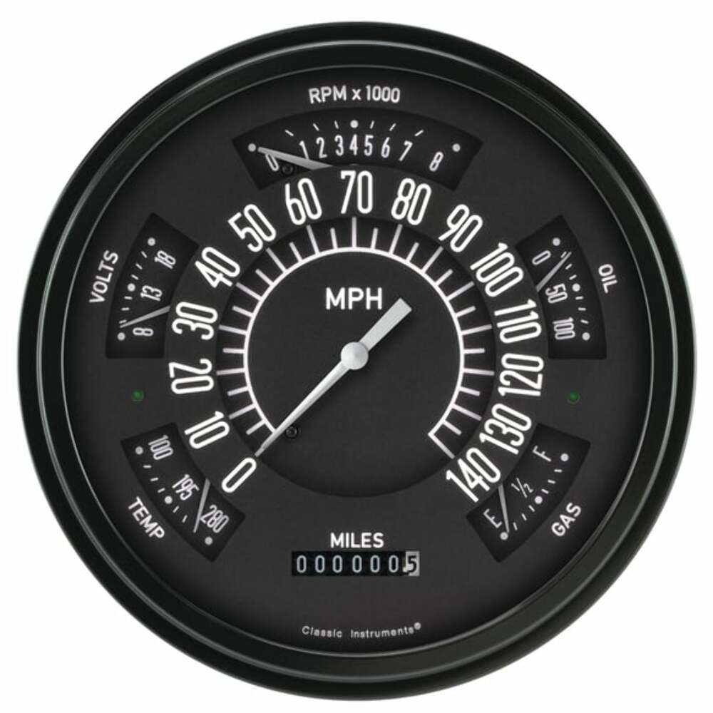 The '66-'77 Ford Bronco Package features the speedometer, tachometer, fuel(75-10ohm), temperature, volt, and oil gauges all in one direct fit instrument. Installing the all-electronic cluster is easy with the included model specific mounting hardware, Classic Instruments' Zeus Speedometer Technology for push button calibration, and all the included sending units.