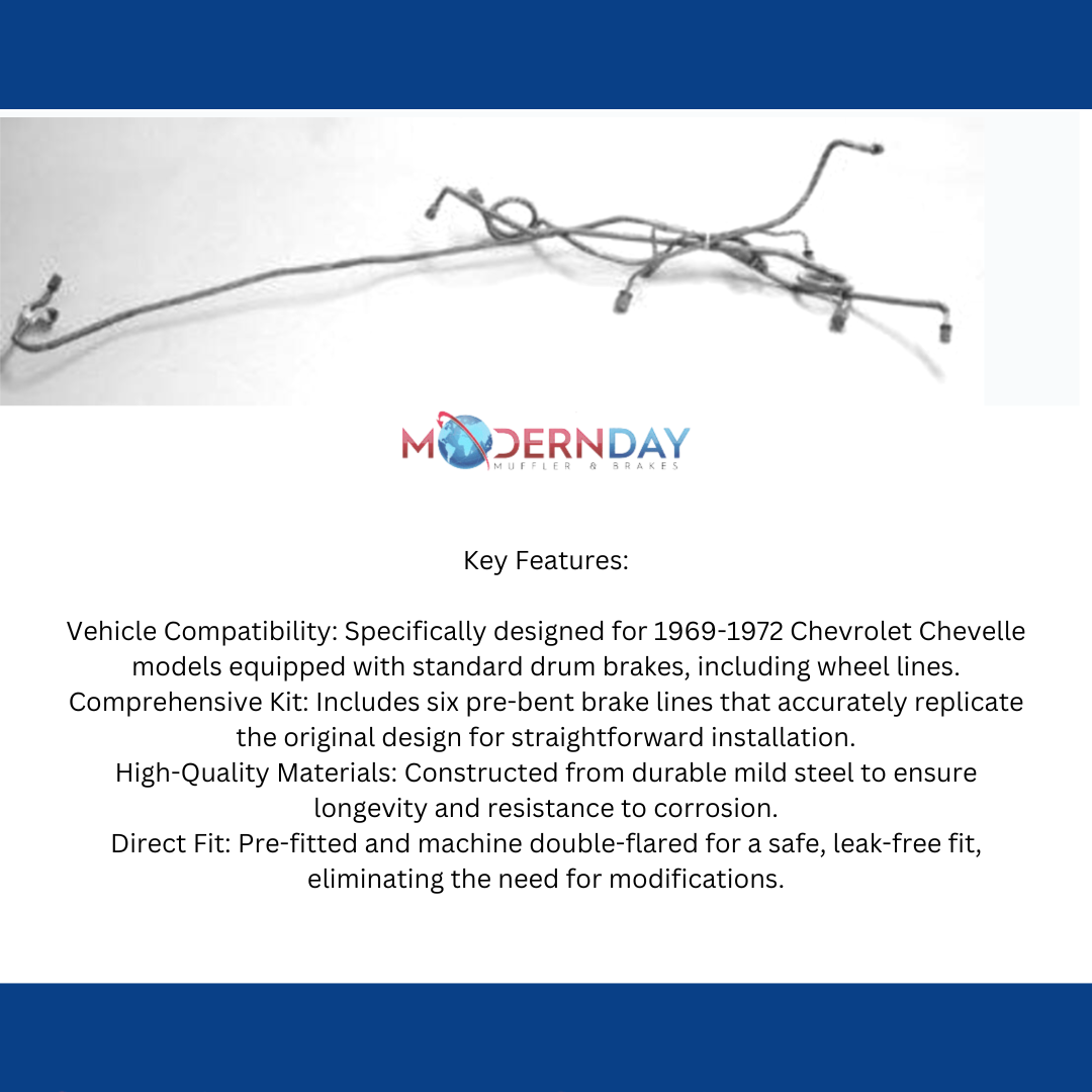 Vehicle Compatibility: Specifically designed for 1969-1972 Chevrolet Chevelle models equipped with standard drum brakes, including wheel lines.