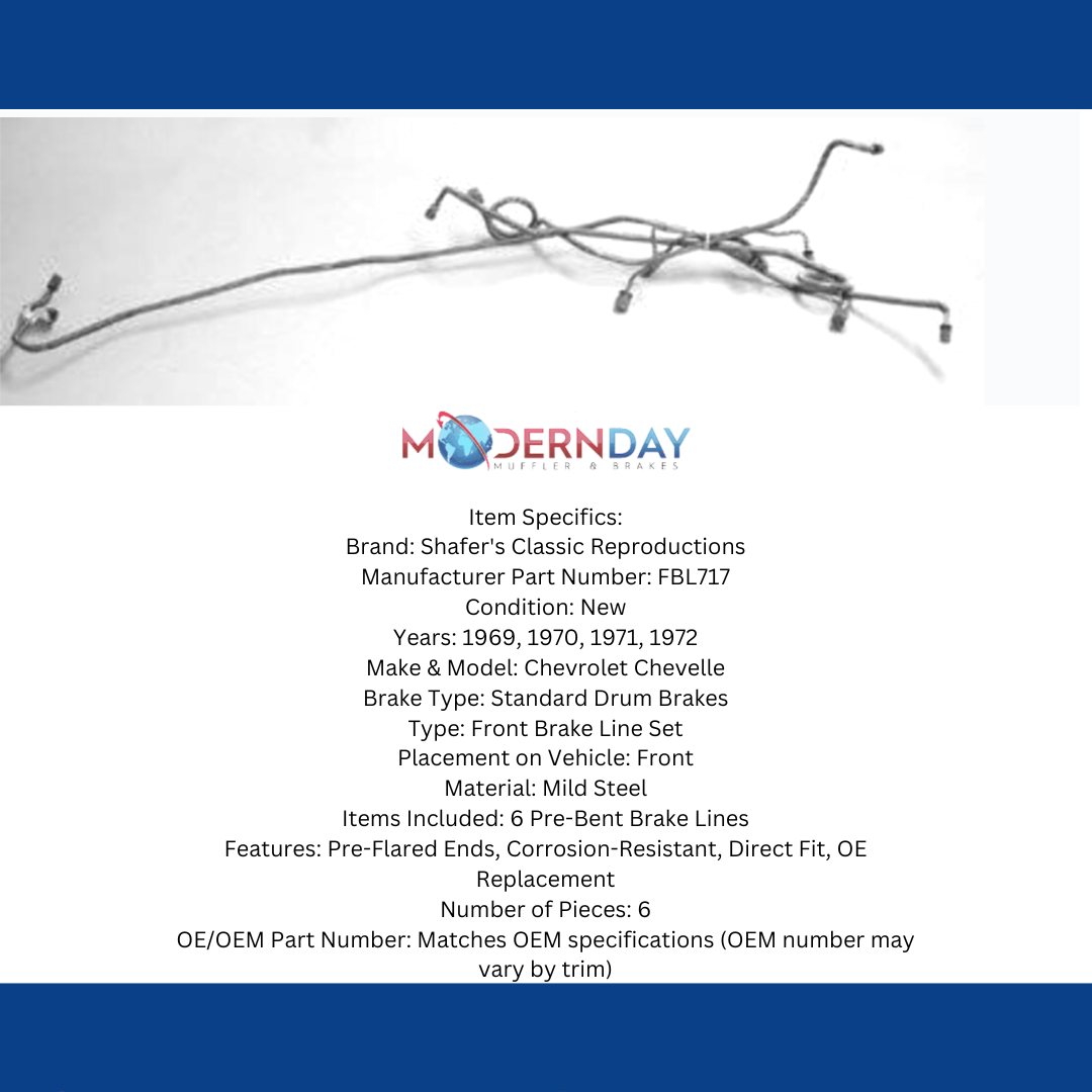 Fits 1969 - 1972 Chevrolet Chevelle Front Brake Line Set FBL717