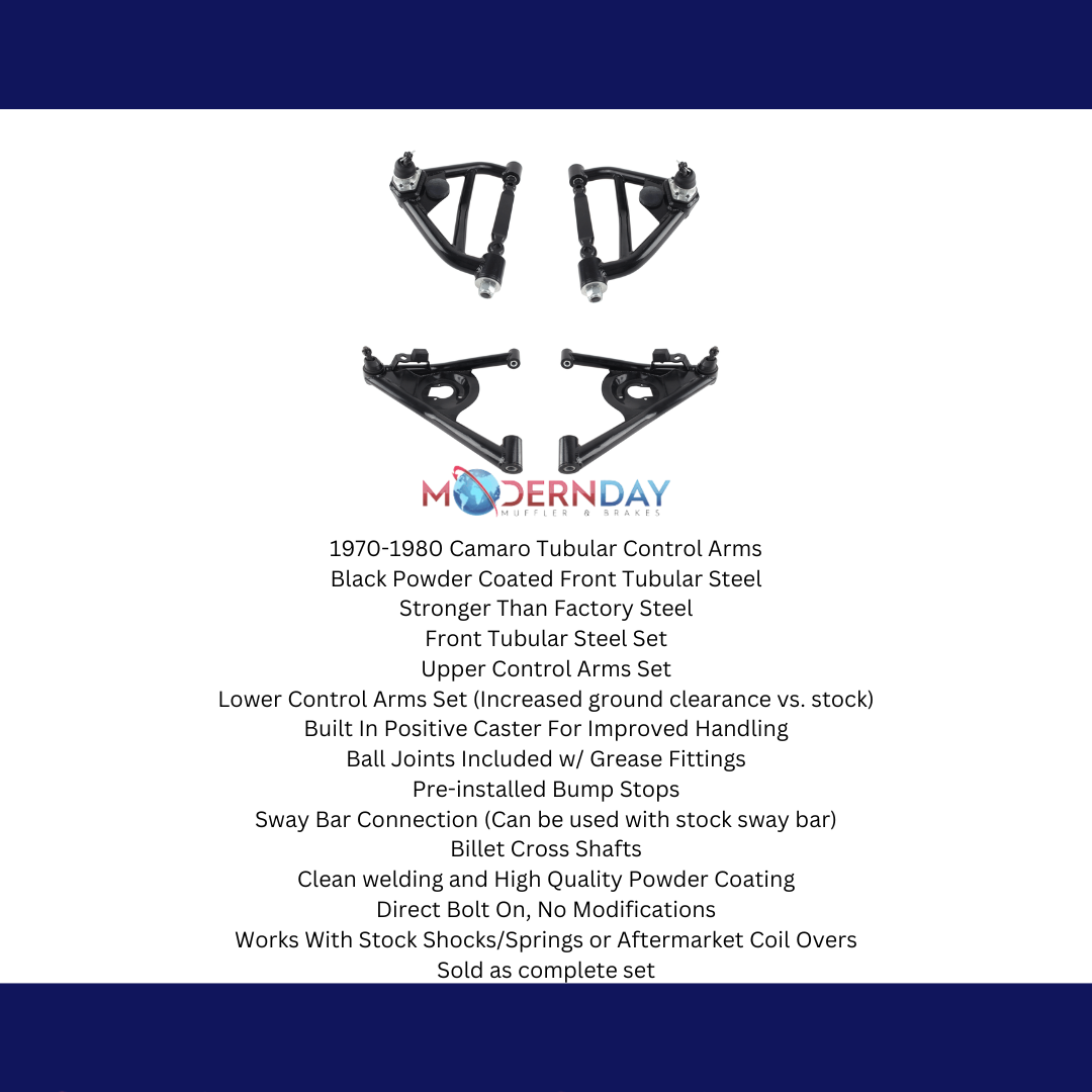 Upgrade your classic Chevrolet Camaro's suspension with this high-quality tubular control arm set, engineered to deliver improved handling, durability, and a sleek appearance.