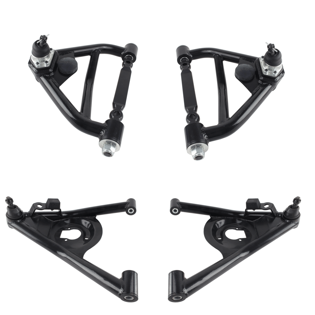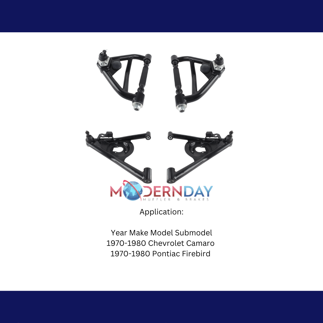 Powder-Coated Finish: The black powder-coated finish provides excellent corrosion resistance, maintaining the control arms' appearance and integrity over time.