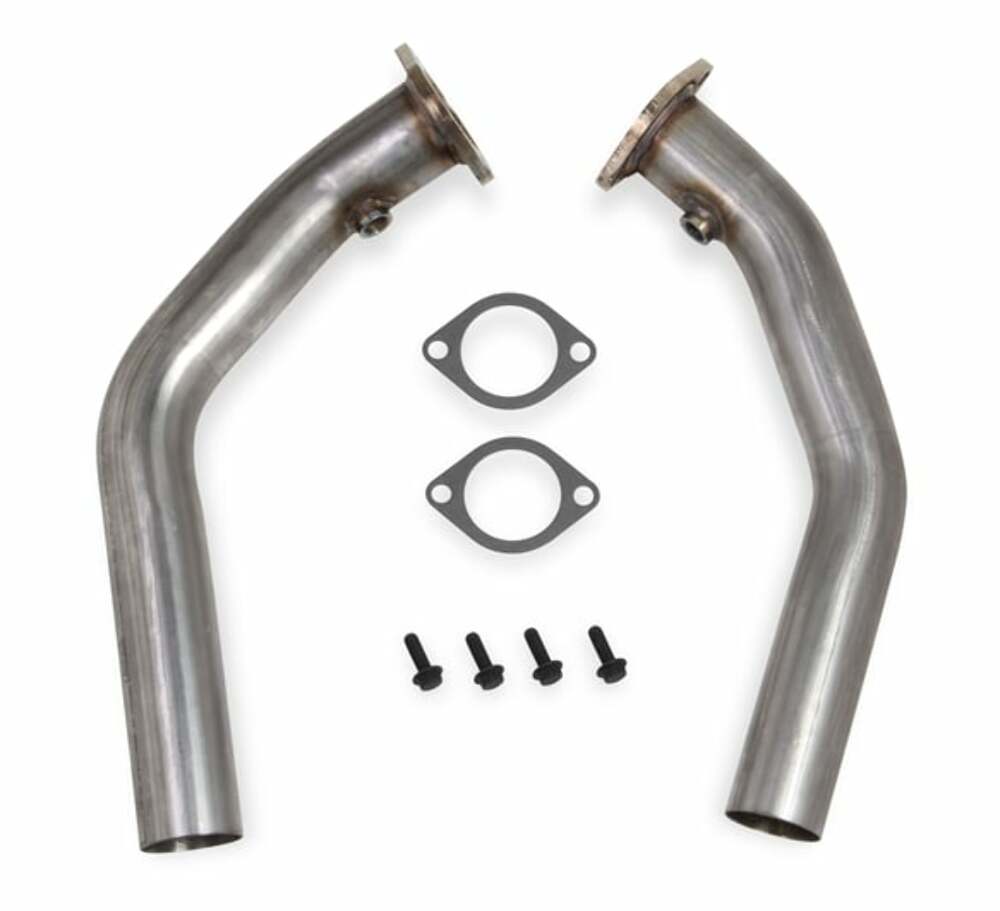 When connecting cast iron manifolds to our full exhaust kits, an adapter pipe is required to fill that gap between the end of the manifolds and our Hooker exhaust systems (which are designed to work with long tube header systems). Hooker has created a full line of adapter tubes that fill the gap and include all hardware and gaskets for a clean and simple connection.