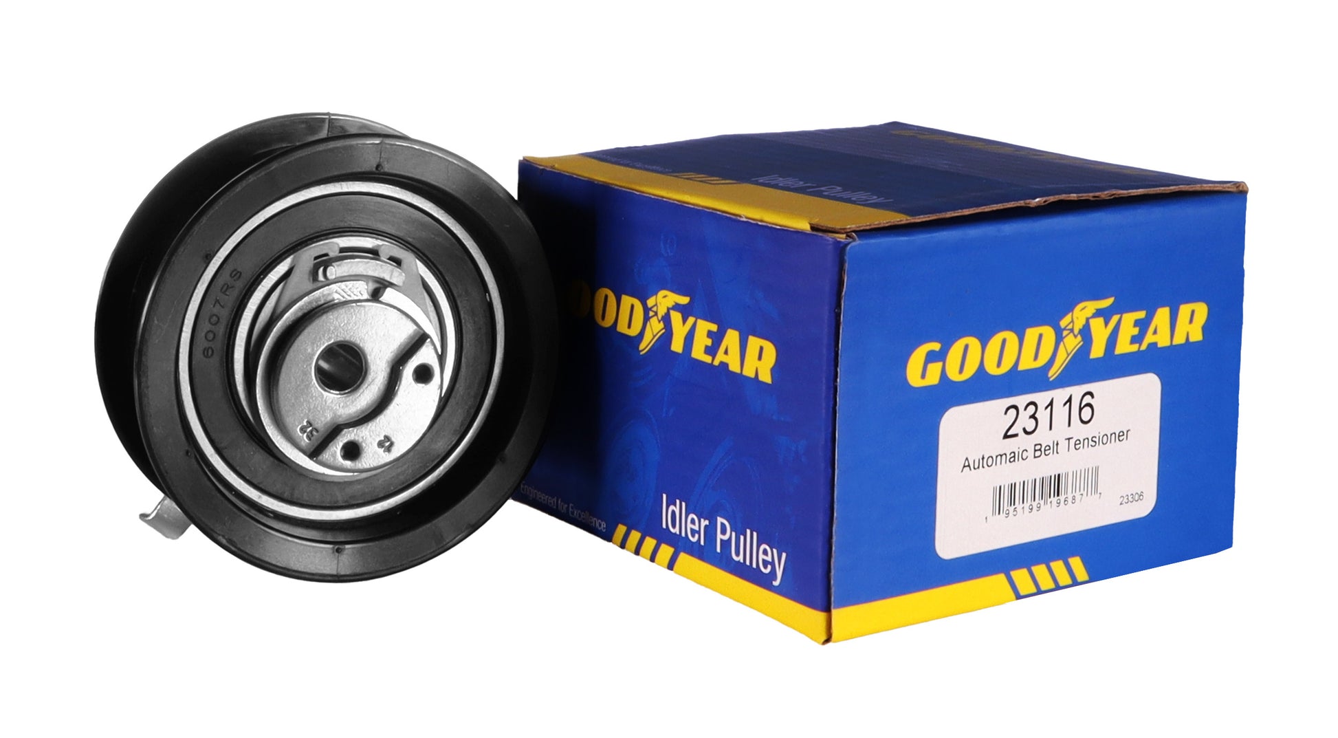 Goodyear timing belt tensioner is a crucial component of an engine's timing system. Its primary function is to maintain the proper tension in the timing belt. The timing belt connects the crankshaft and camshaft(s) of an engine, ensuring that the valves open and close in sync with the piston movement. The tensioner applies pressure to the timing belt to keep it tight and prevent slack. This is essential for accurate timing and prevents the belt from skipping teeth on the pulleys. Proper tension is critical to the longevity and performance of the timing belt. A well-functioning tensioner reduces the risk of belt failure, which can lead to serious engine damage. It is important to follow the manufacturer's recommendations for maintenance and replacement intervals for both the timing belt and the tensioner. Regular inspections and timely replacements can help prevent catastrophic engine failure and ensure the smooth operation of the engine's timing system. Upgrade to Goodyear Timing Belt Tensioners for precise and reliable timing belt performance, backed by a trusted brand with a legacy of quality and innovation in automotive components.