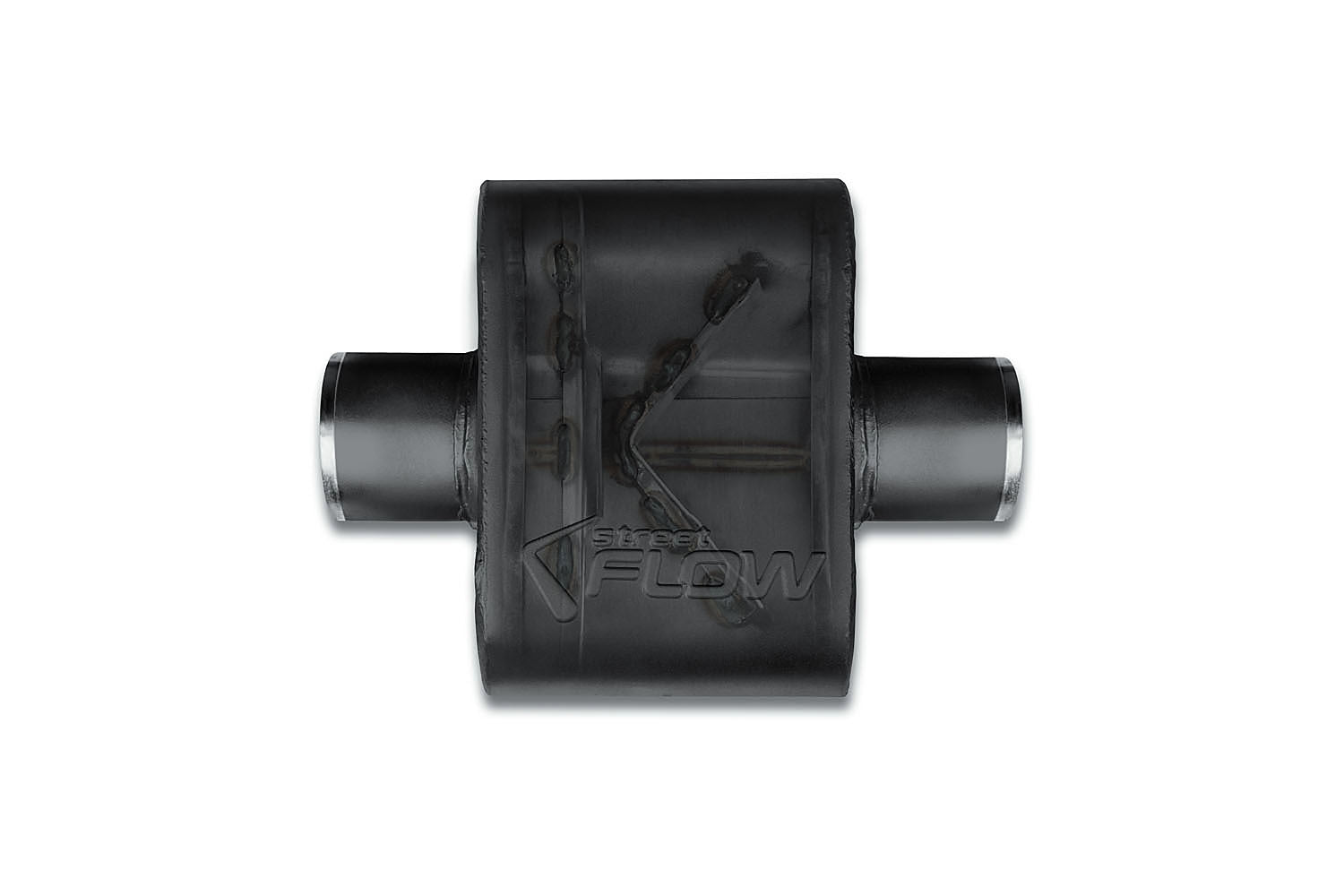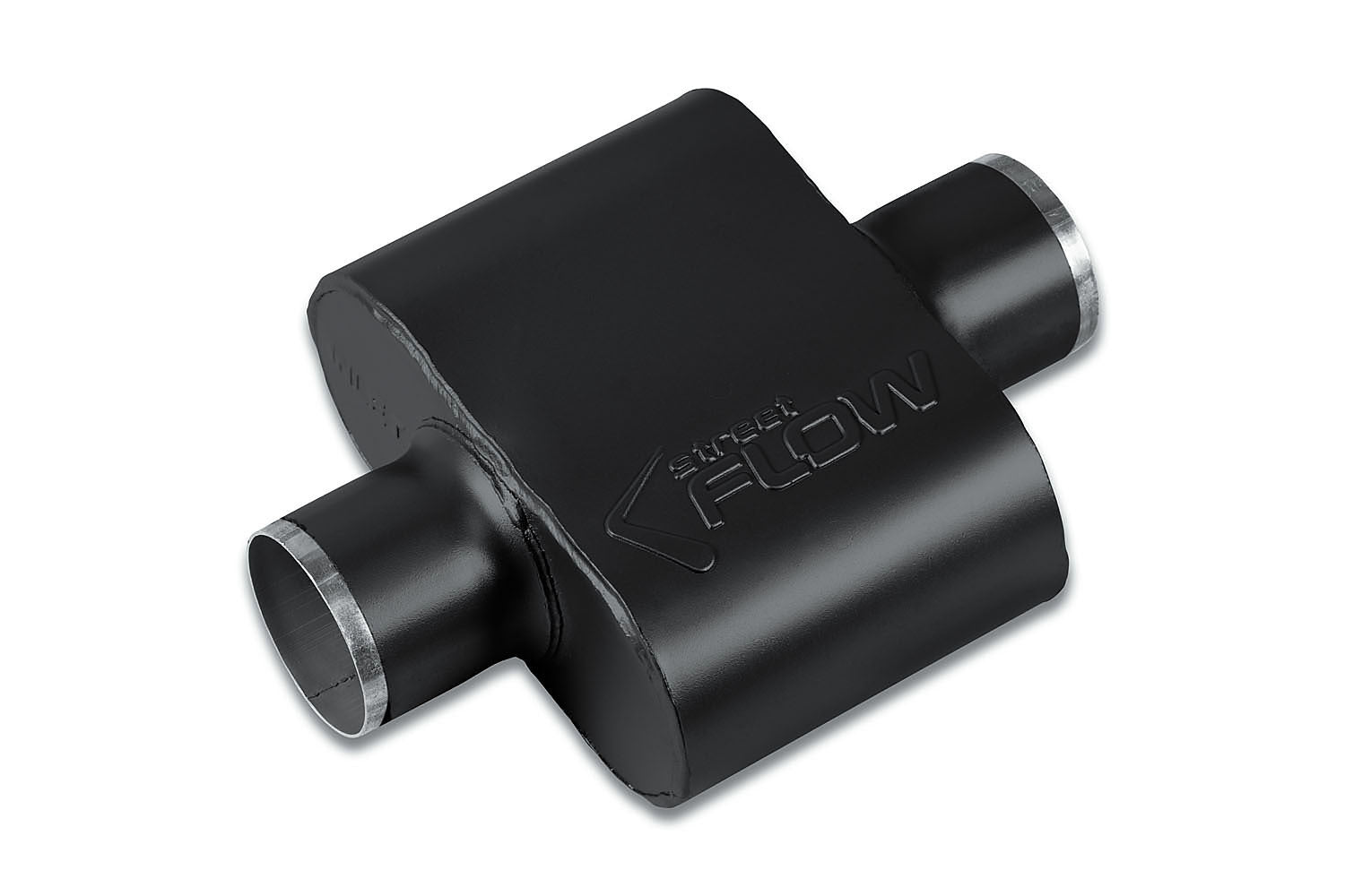 Street Flow Stainless, 1 Chamber Performance Muffler, Aggressive Tone, 16-Gauge 409-Grade Stainless Steel, Premium Powder Coat Finish, 3.0" Center In, 3.0" Center Out, 5 Year Limited Warranty.