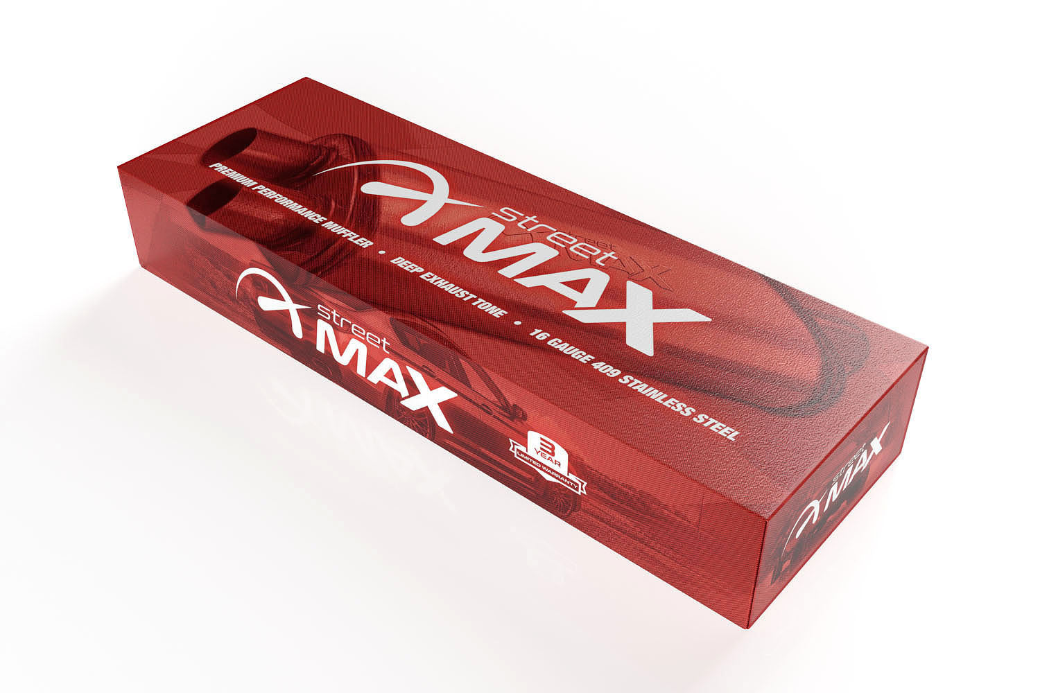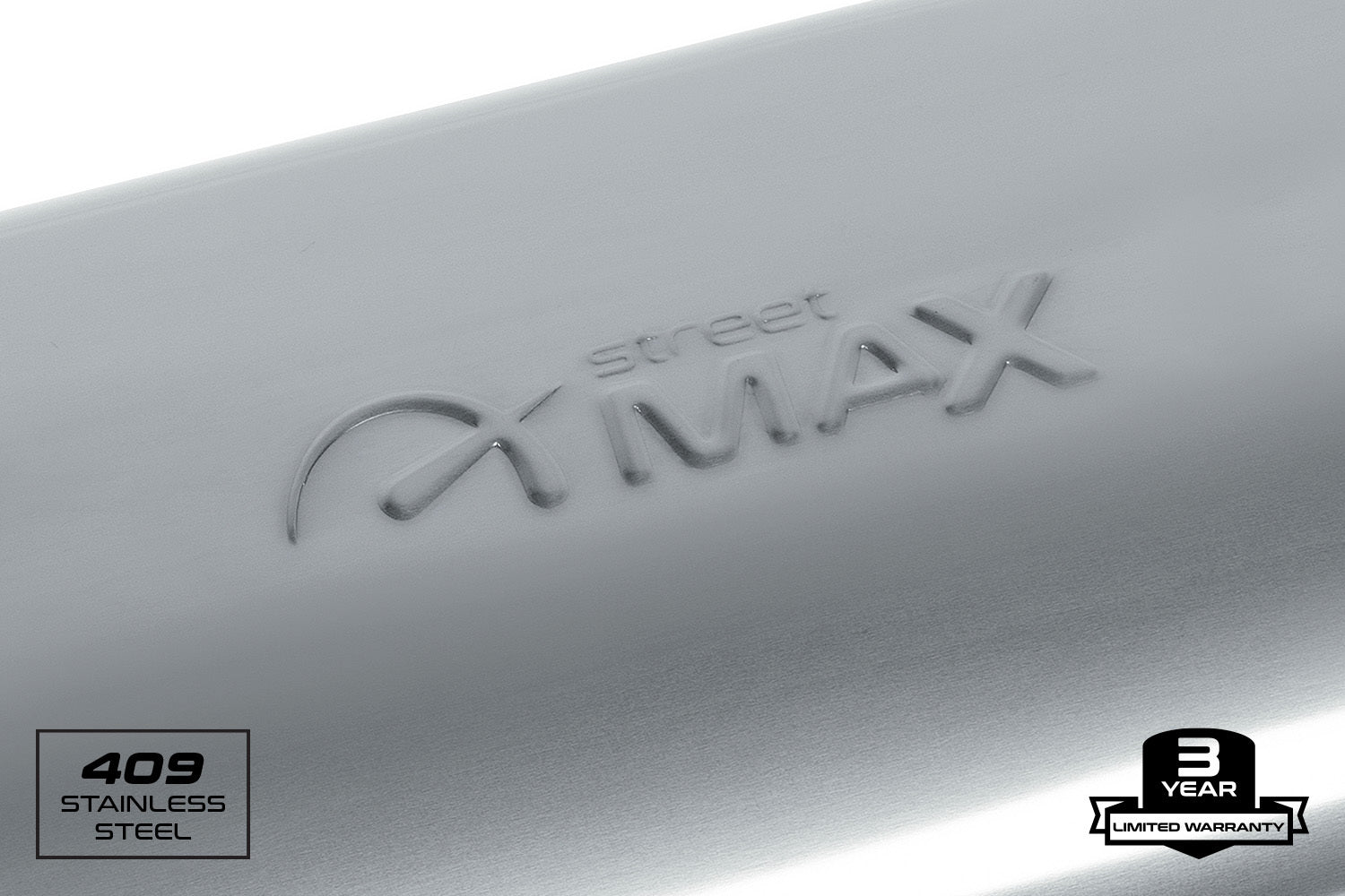 Street Max, Stainless Straight-Through Performance Muffler, 4.0" x 9.0" x 22.0" Oval Body, Mild Tone, 16-Gauge 409-Grade Stainless Steel, Satin Finish, 2.5" Dual In, 2.5" Dual Out, Reversible, 3 Year Limited Warranty.