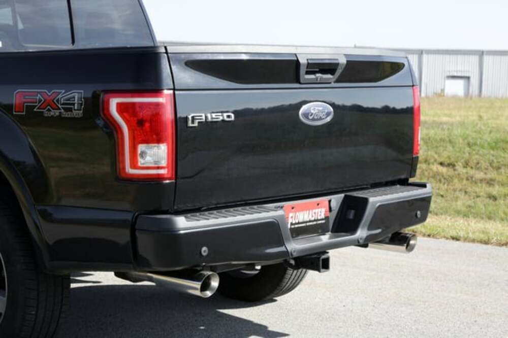 Flowmaster introduces our Force II stainless steel cat-back exhaust system for the 2015-20220 Ford F-150 trucks with the 2.7, 3.5, and 5.0-Liter engines. This system uses the Super 50 series muffler for a moderate to mild sound level and increased performance. This 3 chamber muffler has a resonance chamber to reduce interior sound, ideal for towing or long haul situations. Mandrel bent 3.0-inch to dual out 2.5-inch 409 stainless steel tubing allows for maximum exhaust flow and durability. This system uses larger 4.0-inch polished stainless steel tips for a custom look. All of the necessary hardware is included, and factory-mounting locations are used for an easy installation. Backed by Flowmaster's Lifetime Limited Warranty.