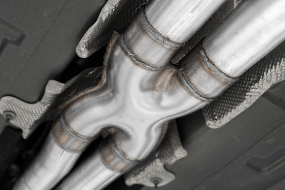 Fits 2015-2016 Dodge Challenger 3in. Cat Back; Dual Rear; Quad Tips - S71153CF